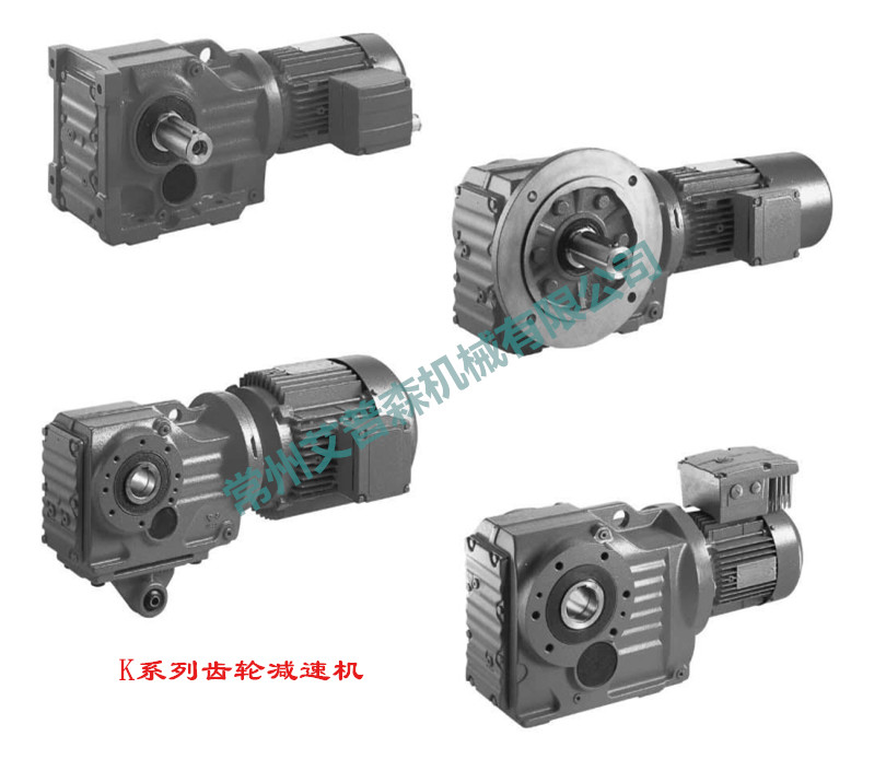 K系列斜齒-傘齒減速機結構特點: ——采用模塊化設計,傳動比覆蓋范圍廣,分配精細合理; ——從KC..37-KC..187共12種機座規格,傳動功率范圍0.12KW-200KW; ——外形設計適合全方位的萬能安裝配置; ——傳動比較精確,范圍覆蓋5.31-179.86,可根據需要任意選取; ——齒輪經高精度磨齒機磨削加工,傳動平衡、噪音低、級間效率達98%; ——為特殊低速場合專門設計的雙聯體減速機,將RC減速機的傳動比拓展至32625.