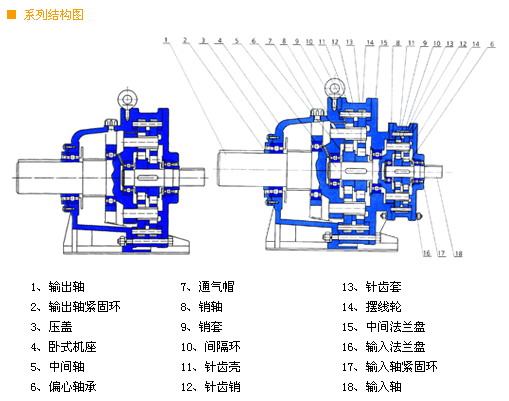 擺線針輪減速機適用于起重運輸、工程機械、冶金、礦山、石油化工、建筑機械、輕工紡織、醫療器械、儀器儀表、汽車、船舶、兵器和航空航天等。